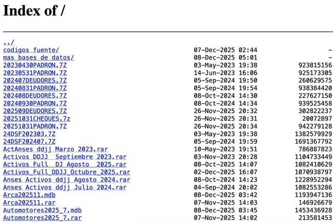 La información filtrada, señaló el sitio, proviene de los principales organismos públicos como ARCA, ANSES, Propiedad Automotor y compañías de celulares como Claro y Personal.